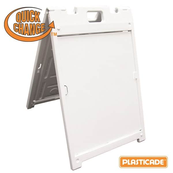 A-frame signs or sandwich sign boards are the most common signs used in any business. These can’t-miss signs are the perfect addition to any business, whether old or new. Not only do they store well, they are also extremely easy to assemble. One sign goes into each the front and back slots of the frame so that your advertisement can be viewed from both sides. With a quick-change feature, boards can easily slide in and out, no tape or screw needed. Plastic frames are lightweight, portable, and ready to set up for any in any location.