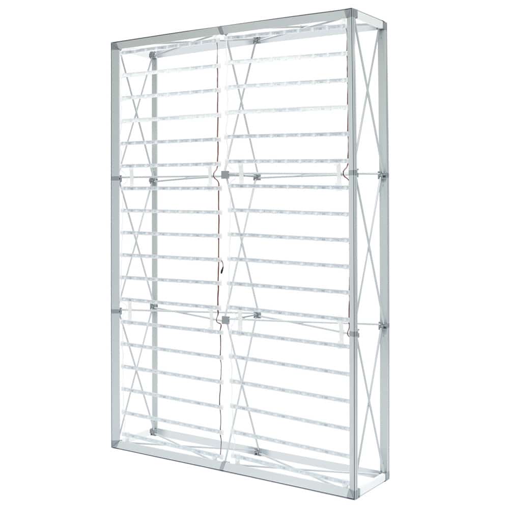 Illuminate your message with the Lumiere Light Wall! Lumiere LED ladder lights made back-lit graphics pop on this innovative combo display of silicone-edge graphics and portable RPL fabric pop ups. Plus the Lumiere shrinks down in size: simply collapse the geometric frame and the SEG bungeed channel bars, and fold or roll the fabric graphics. Setup can be done by one person in 25 minutes. SEG portability is easy and stylish. Multiple Lumiere Light Walls can be connected together to create a larger backwall. No matter how many you connect, you’ll only need 1 pair of end caps.*Ladder lights are installed on one side of the frame only. Single and double-sided displays use the same quantity of lights. Lights do not need to be installed on the backside of the frame for double-sided graphics.*Hard case options will hold 1 frame w/bag, channel bars w/bags and a full set of LED ladder lights with transformers, clips, etc for frame sizes up to 10′ x 7.5′. Printing usually takes 2-3 weeks.